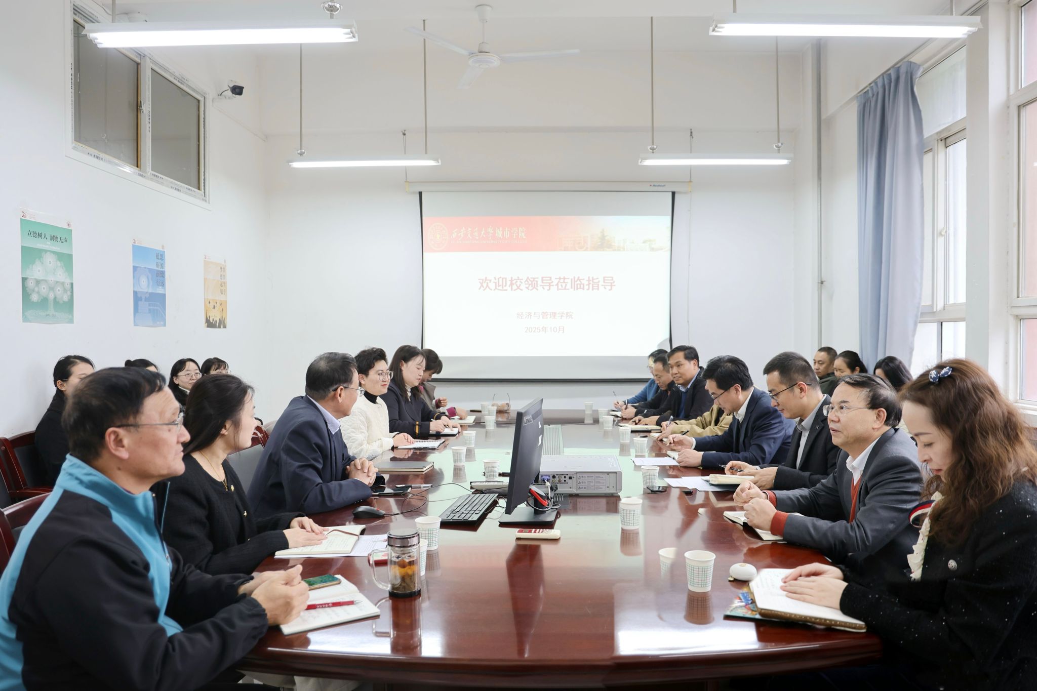 10月22日,王永泉校长带队调研二级学院,首站来到经济与管理学院,看望学院教师,并组织召开工作座谈会。校长助理、行政人事部部长姬志国,校长助理、财务处处长马江涛参加调研。