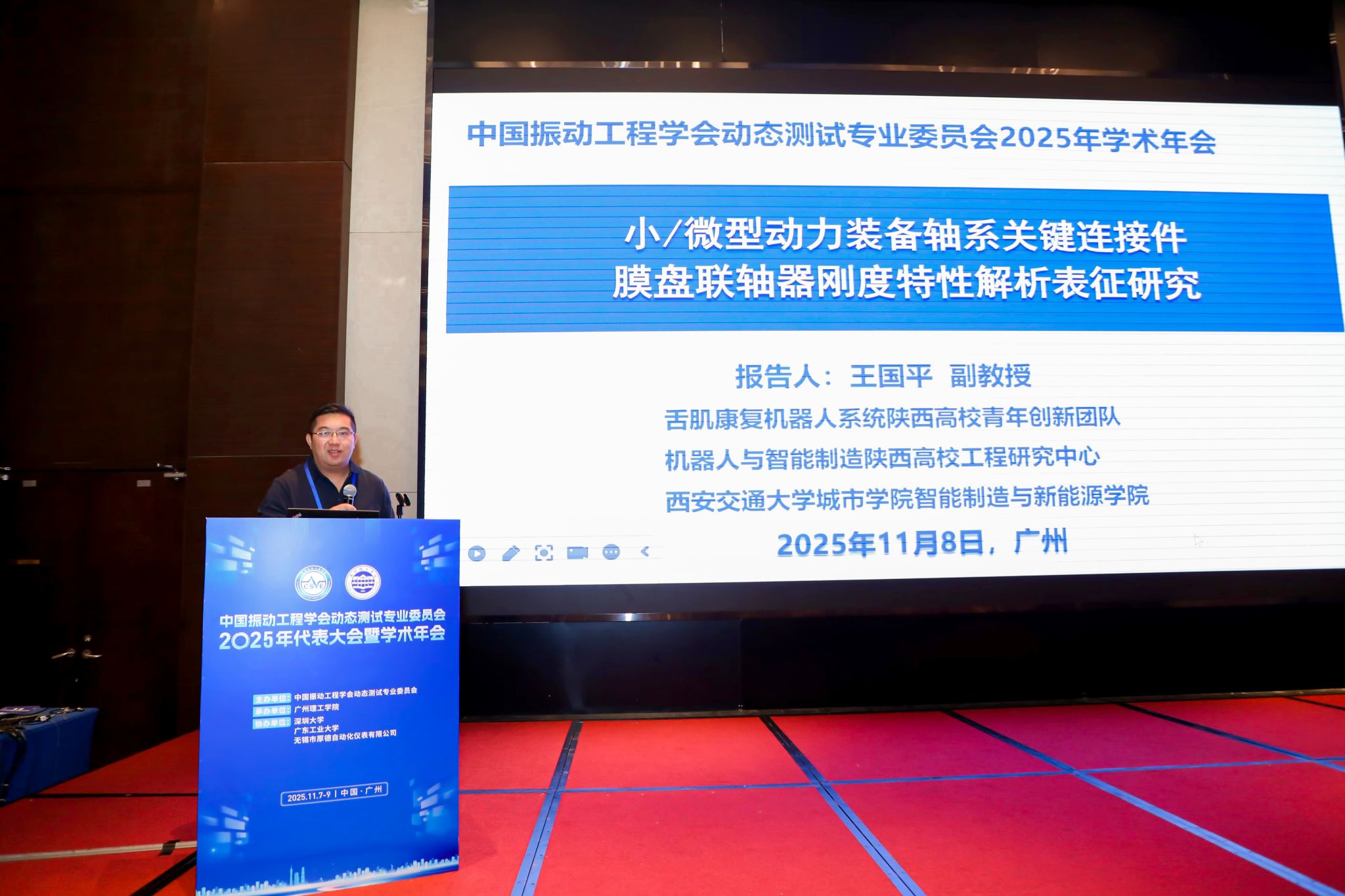 11月7日至9日,中国振动工程学会动态测试专业委员会2025年度学术年会在广州召开。我校智能制造与新能源学院副院长王国平和机械电子系系主任樊琛参加会议。王国平作题为《小/微型动力装备轴系关键连接件膜盘联轴器刚度特性解析表征研究》的主题报告。