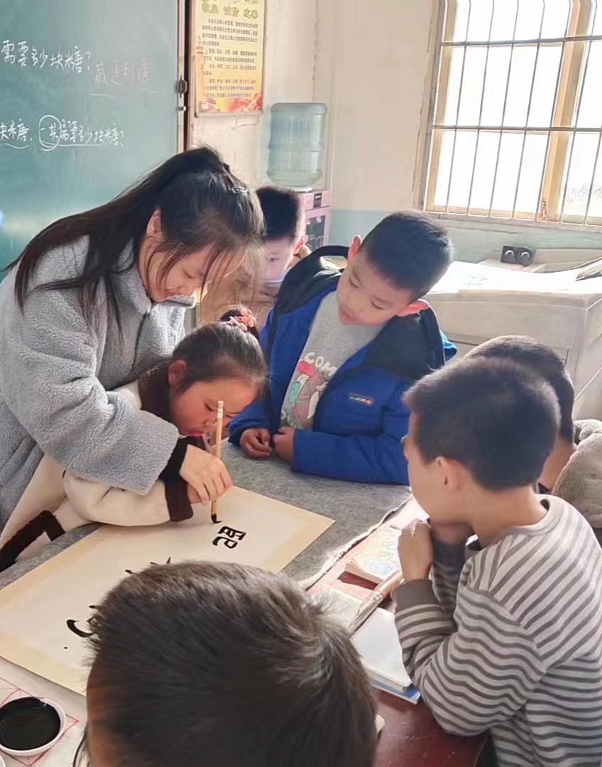 那一刻她忽然明白,自己带来的不仅是笔墨,更是一扇窗。透过它,孩子们第一次窥见了另一个世界——一个可以用线条和色彩表达情绪、安放想象的世界。“名义上我们是老师,但实际上,我们才是被教育的那一方。”张佳瑶说。孩子们的纯粹与勇敢,让她重新理解了什么是创作的本真——那是一种不加修饰的情感流露,是艺术最动人的状态。笔墨虽轻,却能承载千钧情感。课堂虽小,却在她心中埋下了坚定的信念。