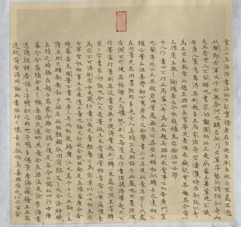 “这次比赛对我而言是‘抠到极致’的体验。”张佳瑶笑称。她的参赛作品是小楷《画禅室随笔选抄》。与一挥而就的大字不同,小楷考验的是极致的耐心与精准。她的老师要求极为严苛:通篇字体大小必须一致,行间气息务求贯通,每个字的笔画舒展度乃至相同字在不同位置的变化处理,都需精心设计。