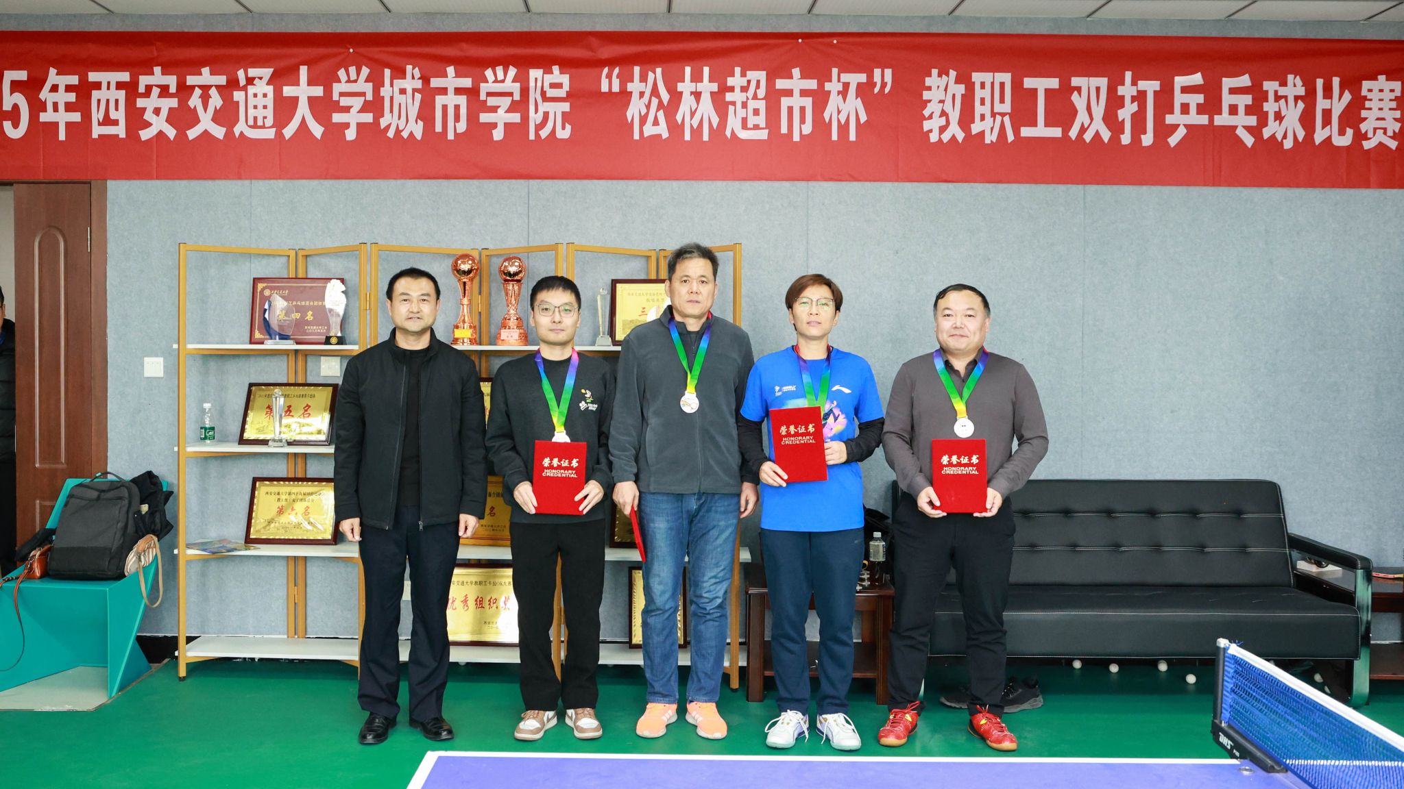 12月2日中午,由校工会主办的2025年“松林超市杯”教职工双打乒乓球比赛在行政楼510职工小家完赛并举办颁奖仪式。