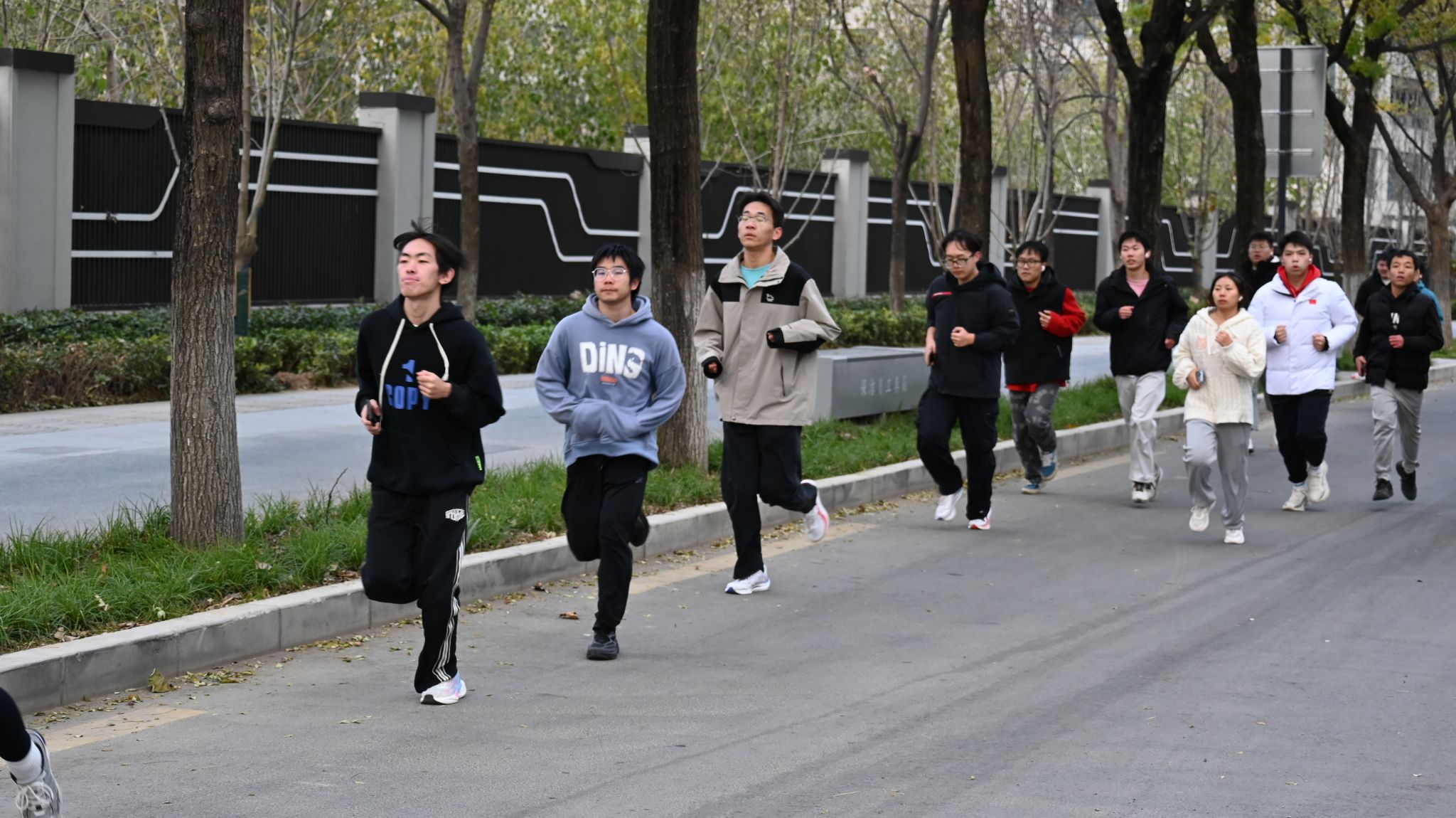 随着发令枪响,越野赛正式开始。选手们如离弦之箭冲出起点,赛道上瞬间掀起阵阵竞技热潮。他们或结伴前行、相互鼓劲,或孤身领跑、奋力冲刺,脚下的步伐坚定而有力,身后的身影在冬日暖阳中舒展延伸。全体工作人员忠于职守,热情服务。志愿者们暖心助力,为师生做好后勤服务。西安大兴医院和校医院组建专业医疗救护团队,为我校冬季越野赛全程筑起“健康防线”。