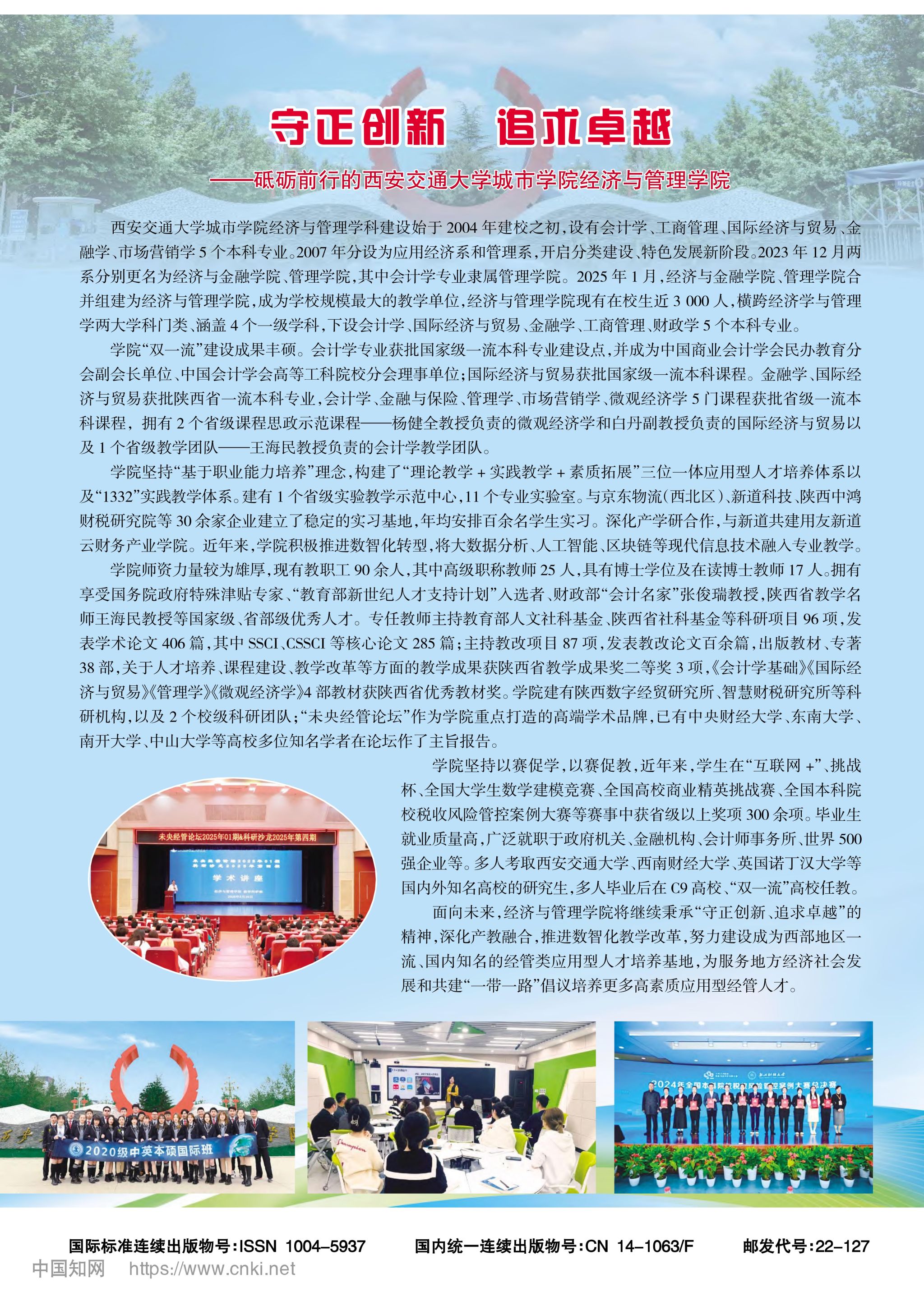 报道以“守正创新追求卓越——砥砺前行的西安交通大学城市学院经济与管理学院”为主题,通过图文并茂的形式,从学院发展历程、“双一流”建设成果、人才培养模式创新、师资队伍建设、学生竞赛成绩和就业质量等多个方面,全方位展现了经济与管理学院在学科建设、人才培养、教学科研等方面取得的丰硕成果。