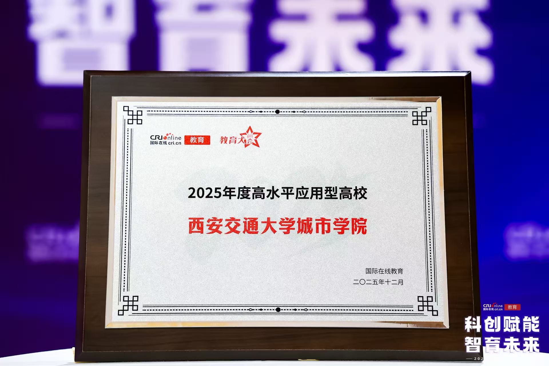12月18日,2025年度国际在线教育大会在北京召开。本届大会以“科创赋能 智育未来”为主题,汇聚教育界权威专家、知名校长和优秀教师共同探索教育现代化路径,为构建高质量、可持续、面向未来的教育新生态贡献智慧与力量。会上,各项年度大奖揭晓,西安交通大学城市学院获评“2025年度高水平应用型高校”称号。