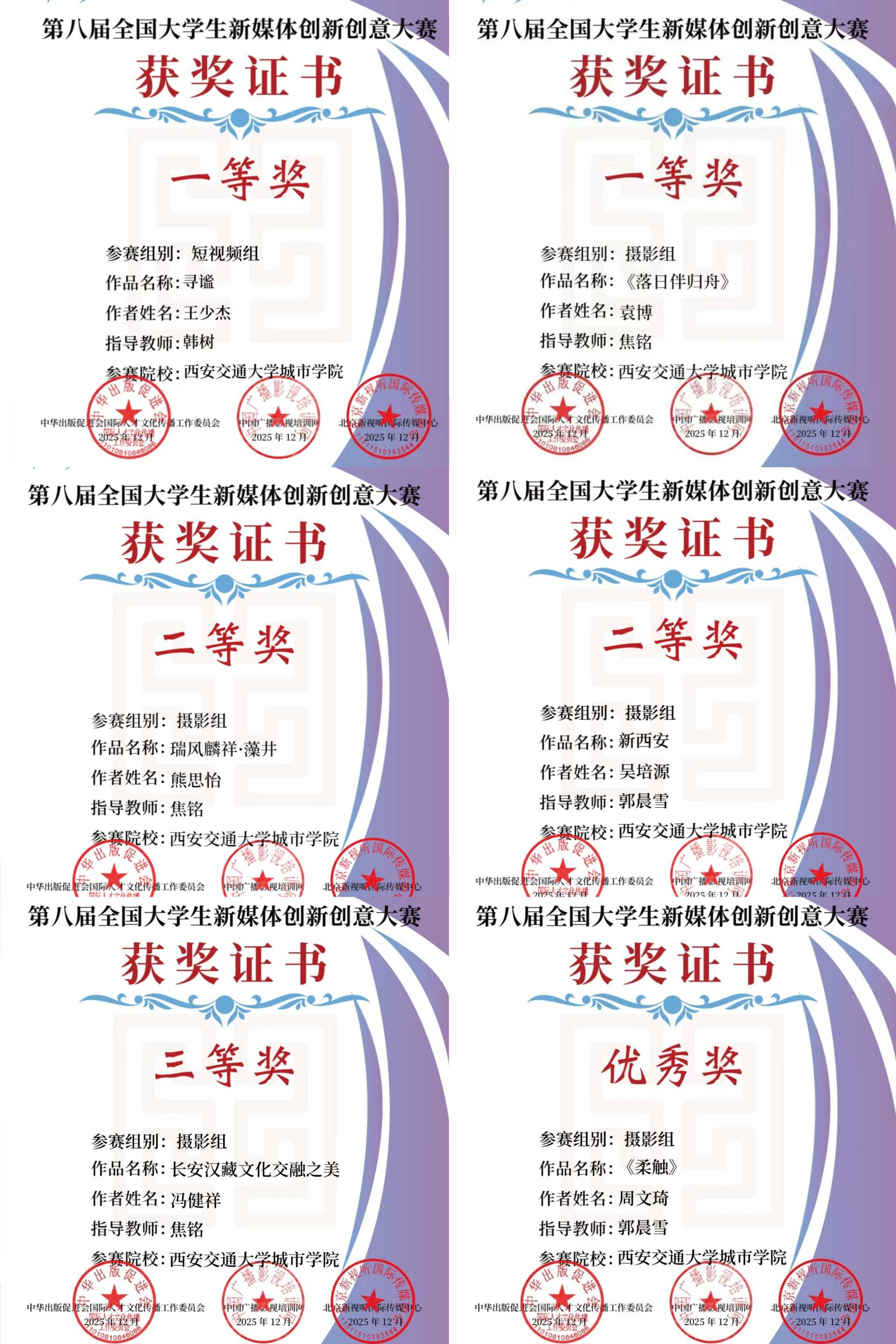 近日,第八届全国大学生新媒体创新创意大赛评奖结果公布。西安交通大学城市学院学生获一等奖2项、二等奖2项、三等奖1项、优秀奖1项。同时,传媒与外国语学院教师韩树、焦铭、郭晨雪获“优秀指导教师”称号。