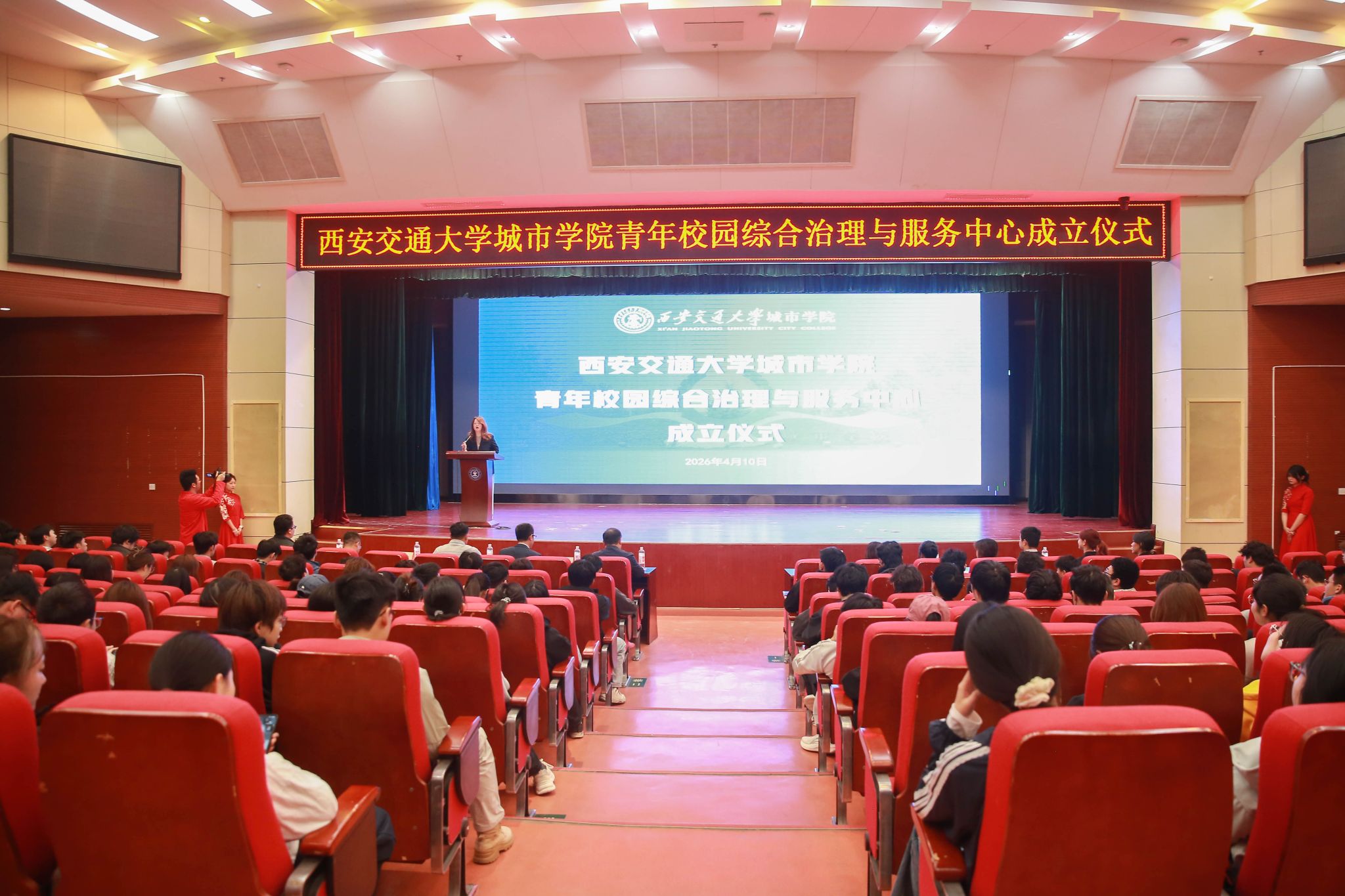 4月10日上午,西安交通大学城市学院青年校园综合治理与服务中心成立仪式在教二报告厅举行。党委书记严红昌、副校长岳华海出席仪式。会议由团委书记茹静主持。