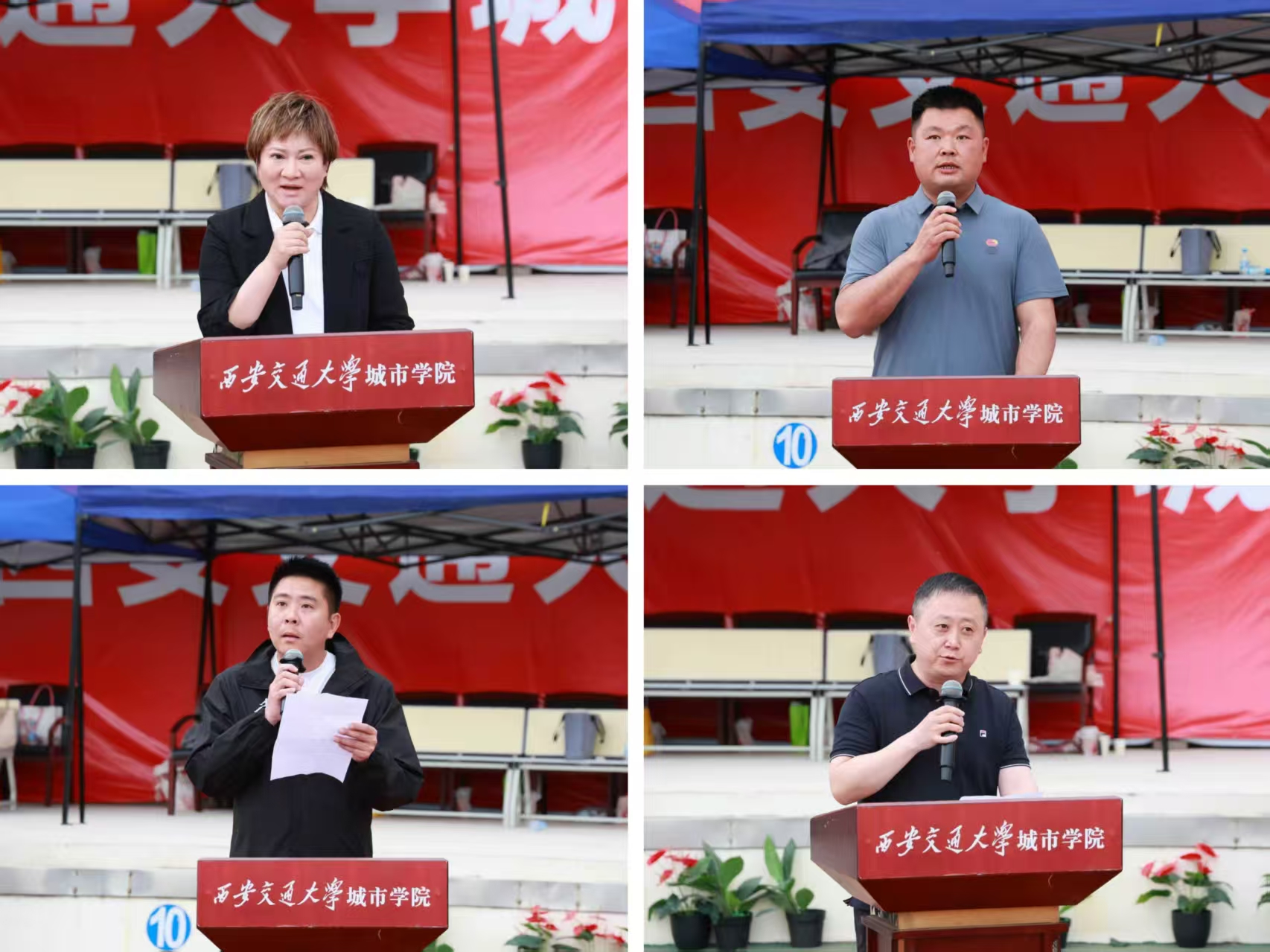 4月24日下午,西安交通大学城市学院第十七届田径运动会闭幕式在田径场举行。经过两天的激烈角逐,本届运动会在团结、奋进、友好的氛围中顺利落下帷幕。闭幕式由党委副书记、副校长陈书荣主持。
