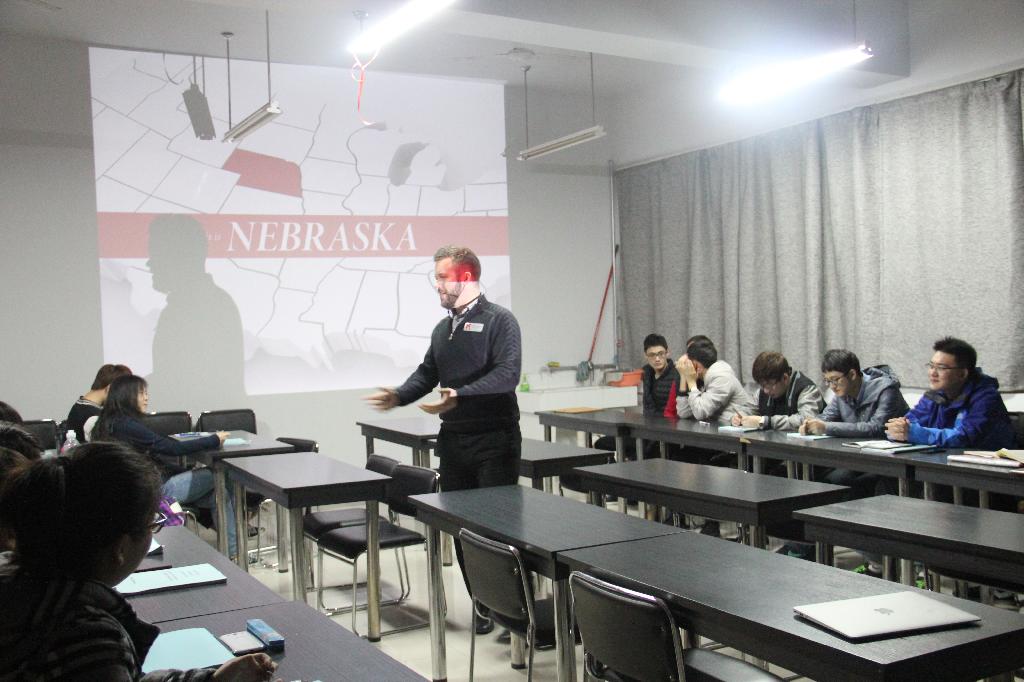 Jake Hoy-Elswick先生还为中美项目学生作了题为《内布拉斯加林肯大学校情及留学介绍》的报告,详细介绍了内布拉斯加林肯大学的校情校史以及新生入学流程,并现场解答了同学们的问题。
