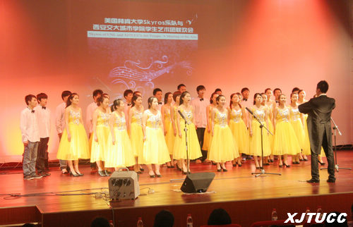2013年5月17日下午,美国内布拉斯加林肯大学Skyros乐队与西安交通大学城市学院学生艺术团举办联欢会。出席本次联欢会的领导有西安交通大学城市学院院长陈光德,党委书记赵金胜,副院长崔杜武,及院长助理徐君陶。莅临本次联欢会的嘉宾有美国内布拉斯加林肯大学音乐系主任约翰·里奇曼,美国内布拉斯加林肯大学艺术系技术服务部经理大卫·巴格比,大提琴演奏家威廉姆·布劳恩,中提琴演奏家贾斯丁·克里斯,第一小提琴詹姆斯·莫特,第二小提琴萨拉·皮齐凯米,以及钢琴演奏家艾普利·孙。此次联欢会由学院中美项目办、院团委主办,院大学生艺术团承办。