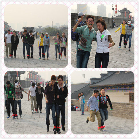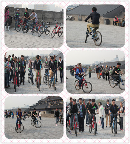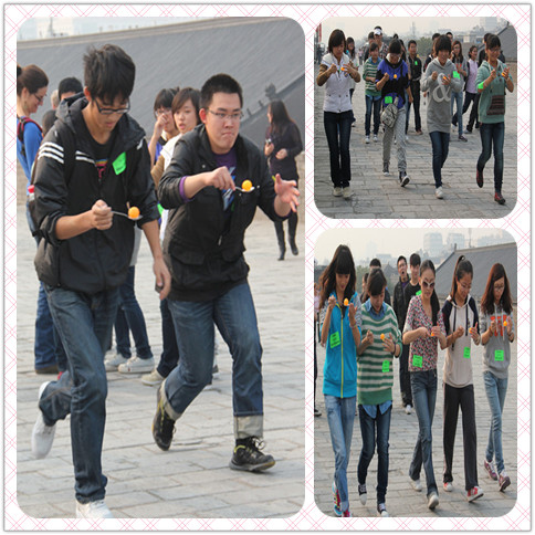 城墙运动会于下午两点与南门正式开幕,Wilson教授在活动前的动员讲话拉开了活动序幕。运动会共设四个参赛项目:“速度与激情”(慢骑自行车)、“回到童年”(踢毽子)、“搬运工”(勺子搬运乒乓球)和“风雨同舟”(两人三足)。