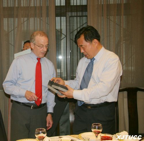 Harvery Perlamn, Chancellor of UNL had a very friendly talking with our leaders in De Fa Chang Hotel. President Chen Guangde, Party Committee Secretary Zhao Jinsheng, Vice President Cui Duwu, President Assisstant Xu Juntao and the head of party and government service center gave them a warm reception. They discussed on PDP program and other related stuff, then sent gifts to each side.