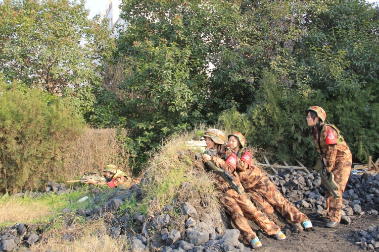 野草中,土堆后,树从里,中美项目班的同学时而紧张作战,时而笑容灿烂。阳光的影射下,这一队战士武威雄孟猛,神采奕奕。在他们身上,我们看到的是中美项目班历届同学不畏坚难,拼搏向前的精神。正是那句:“我将为我的梦想奋勇向前,永不后退,鞠躬尽瘁,死而后已!”