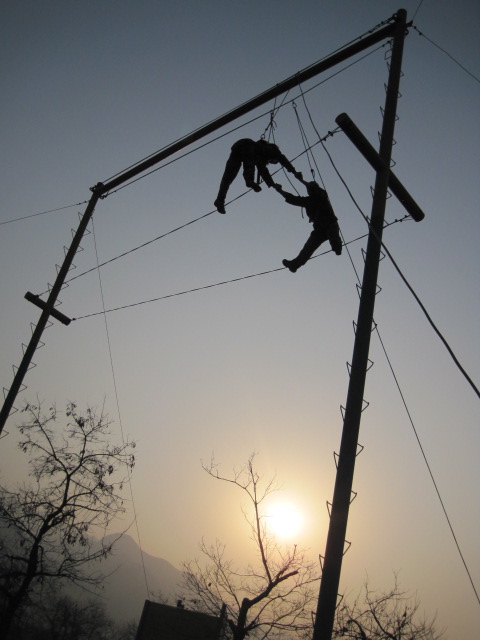 12月12日,中美办全体师生在位于秦岭山脚的天行拓展训练营进行了为期一天的拓展训练。中美办老师朱丽萍,外教Mariah, 及正在我校访问的Dr.Wilson 和Jake 也参加了此次训练。