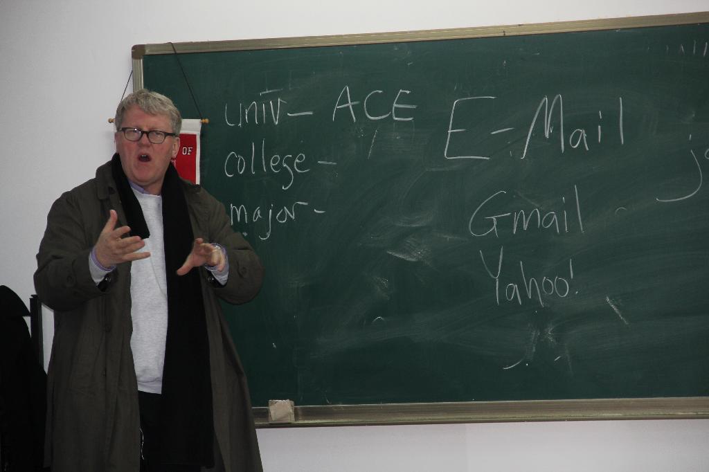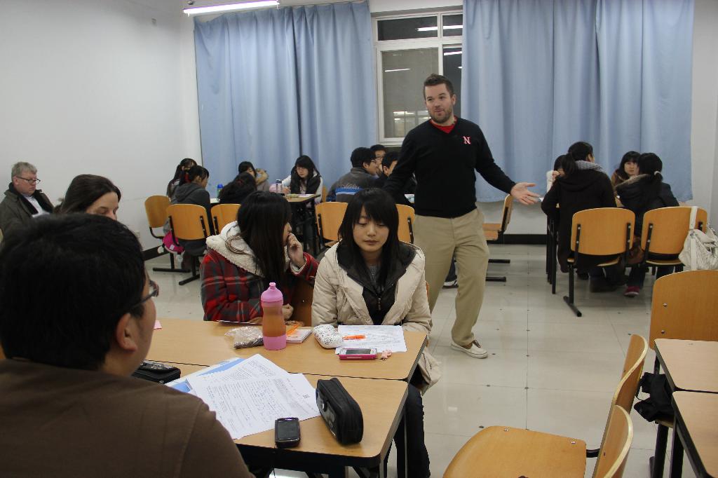 此次来访Wilson教授特别带来招生处国际专员Jake以帮助项目内同学做2011年的出国申请.中美项目办目前40位同学申请2011年8月份入学UNL,包括部分大一同学.Jake当场审核学生的申请资料并对同学们申请过程中的困难提供了高效的帮助.