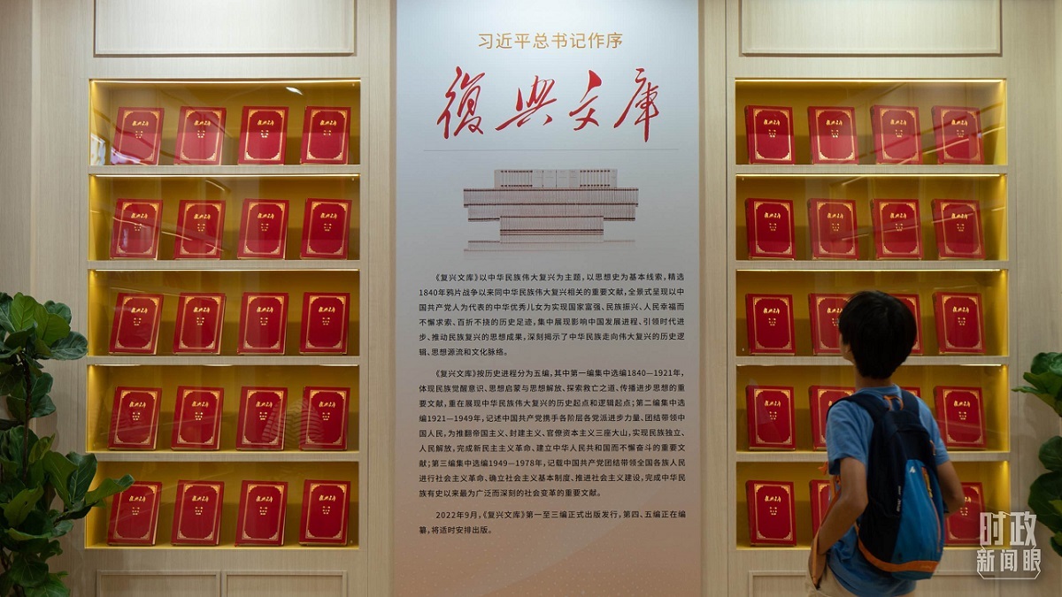 △2023年8月16日,2023上海书展开幕,书展设置的“复兴文库”主题书籍展示区吸引读者驻足查看。