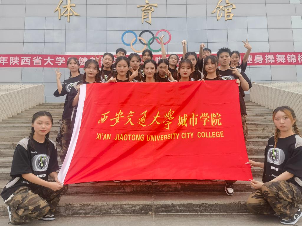西安交通大学城市学院由领队汪瀛、教练李严组织带领学院操舞代表队22名队员参赛。赛前李严对参赛队员进行了严苛系统的训练,队员们不畏艰辛,团结奋斗,利用课余时间积极练习,不断提高,努力做到精益求精。最终获得甲组团体总分第二名,单项比赛第二名3项,第三名1项,第四名1项以及全场最佳音乐制作奖。同时李严老师荣获优秀教练员,郝笑莹同学荣获优秀运动员。