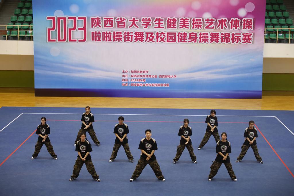 2023年6月21日“2023年陕西省大学生健美操艺术体操啦啦操街舞及校园健身操舞锦标赛”在西安邮电大学落幕。