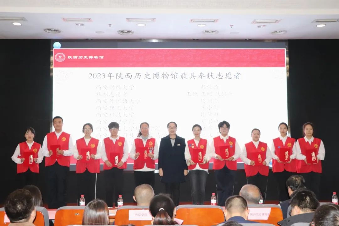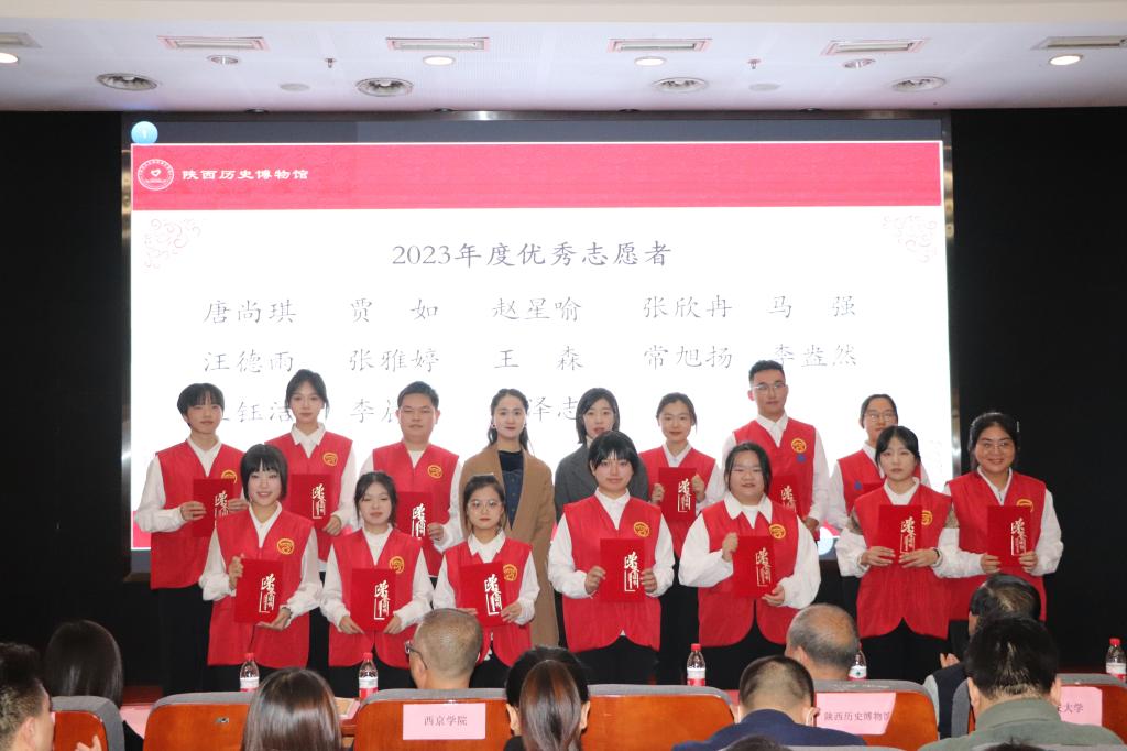 签约仪式上,我校孙闽渝同学荣获陕西历史博物馆“优秀十佳志愿者”荣誉称号(全省仅10人);章希希同学荣获“最具奉献志愿者”荣誉称号(全省仅11人);李盎然、王钰洁、李晨颖、苗泽志和常旭扬5名同学荣获“优秀志愿者”荣誉称号。活动最后,我校与陕西历史博物馆党委书记、馆长侯宁彬交换志愿者协议书。