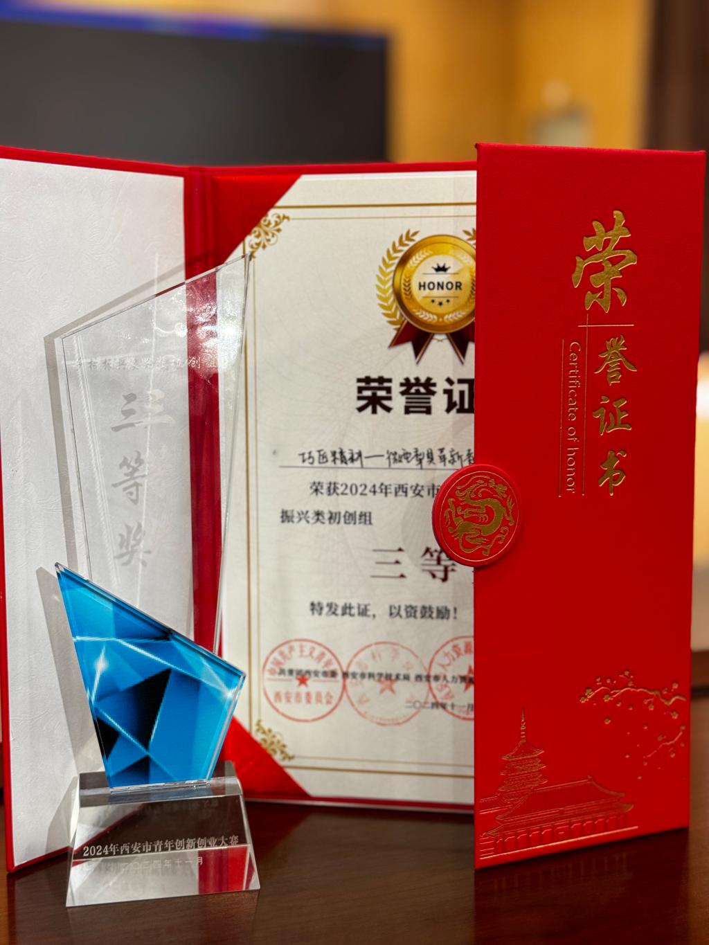 11月13日,由共青团西安市委、西安市科学技术局、西安市人力资源和社会保障局、西安市农业农村局主办,西安经济技术开发区团工委和西安市经开第五学校承办,陕西省青年创业导师协会和西安青年企业家协会协办的2024年西安市青年创新创业大赛在西安经开第五学校圆满落幕。我校《精耕细作独具匠心——微型犁具革新者》项目团队荣获三等奖,是全市唯一一所进入决赛的独立学院。