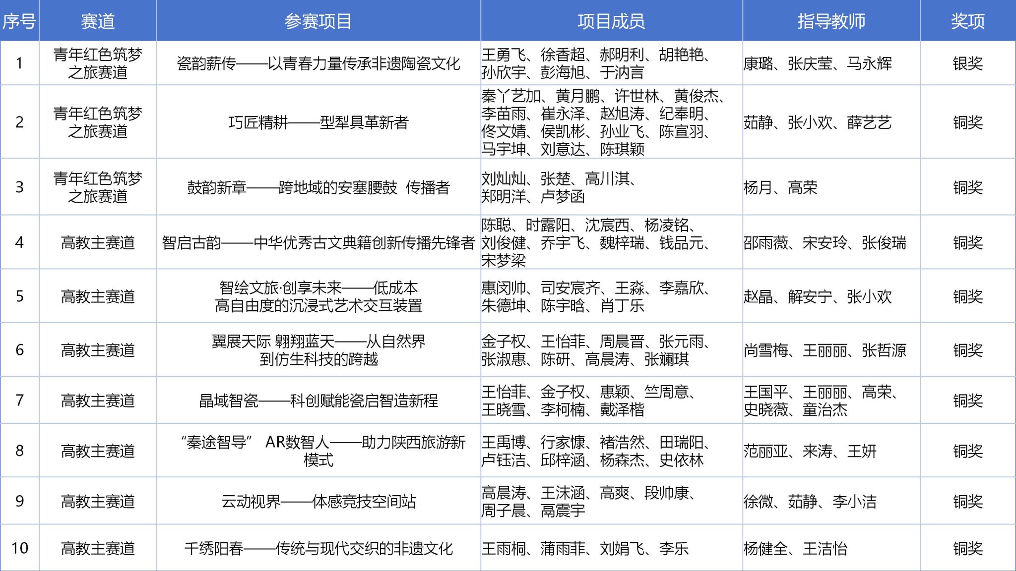 中国国际大学生创新大赛(2025)陕西赛区复赛获奖项目名单