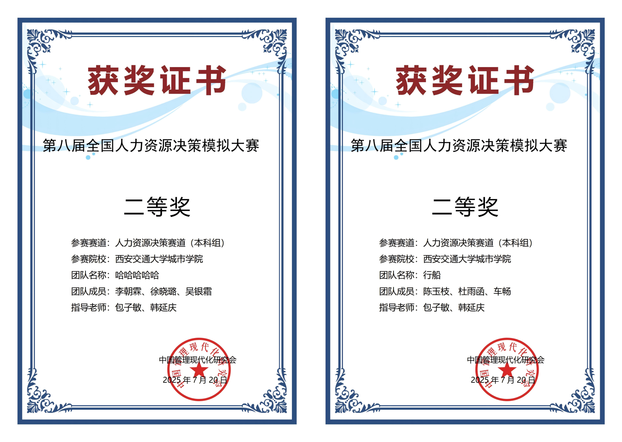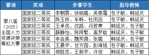 近日,第八届(2025)全国人力资源决策模拟大赛落下帷幕。经过校赛、初赛、复赛等多个环节的激烈比拼,西安交通大学城市学院经济与管理学院代表队斩获国家级二等奖2项、国家级三等奖5项。