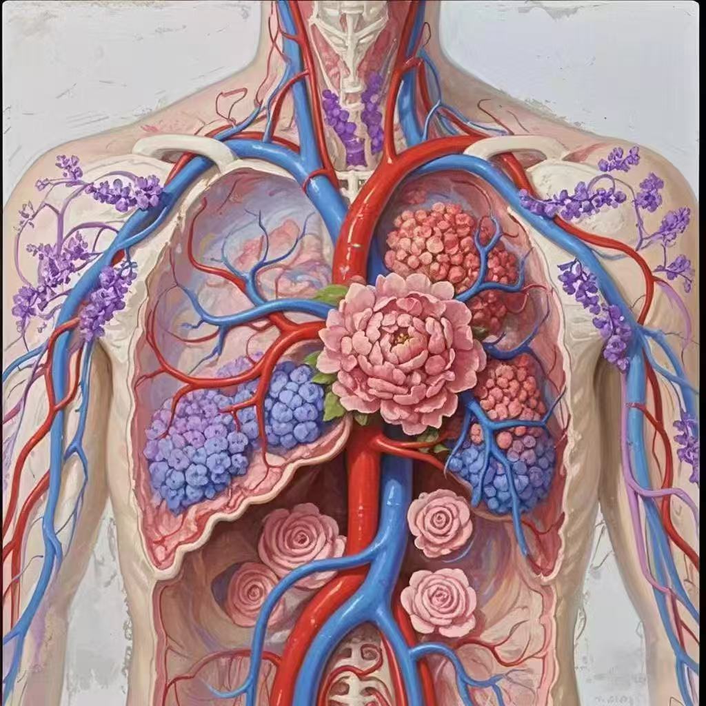 《静脉交响,生命之蓝》以人体静脉系统为主题,通过艺术化的手法展现了血液流动的生命韵律,将医学结构与美学表达完美结合;《繁华脉影,心韵绮章》则聚焦心血管系统的精细构造,以细腻的笔触勾勒出心脏与血管的复杂网络,传递出生命的力量与美感。