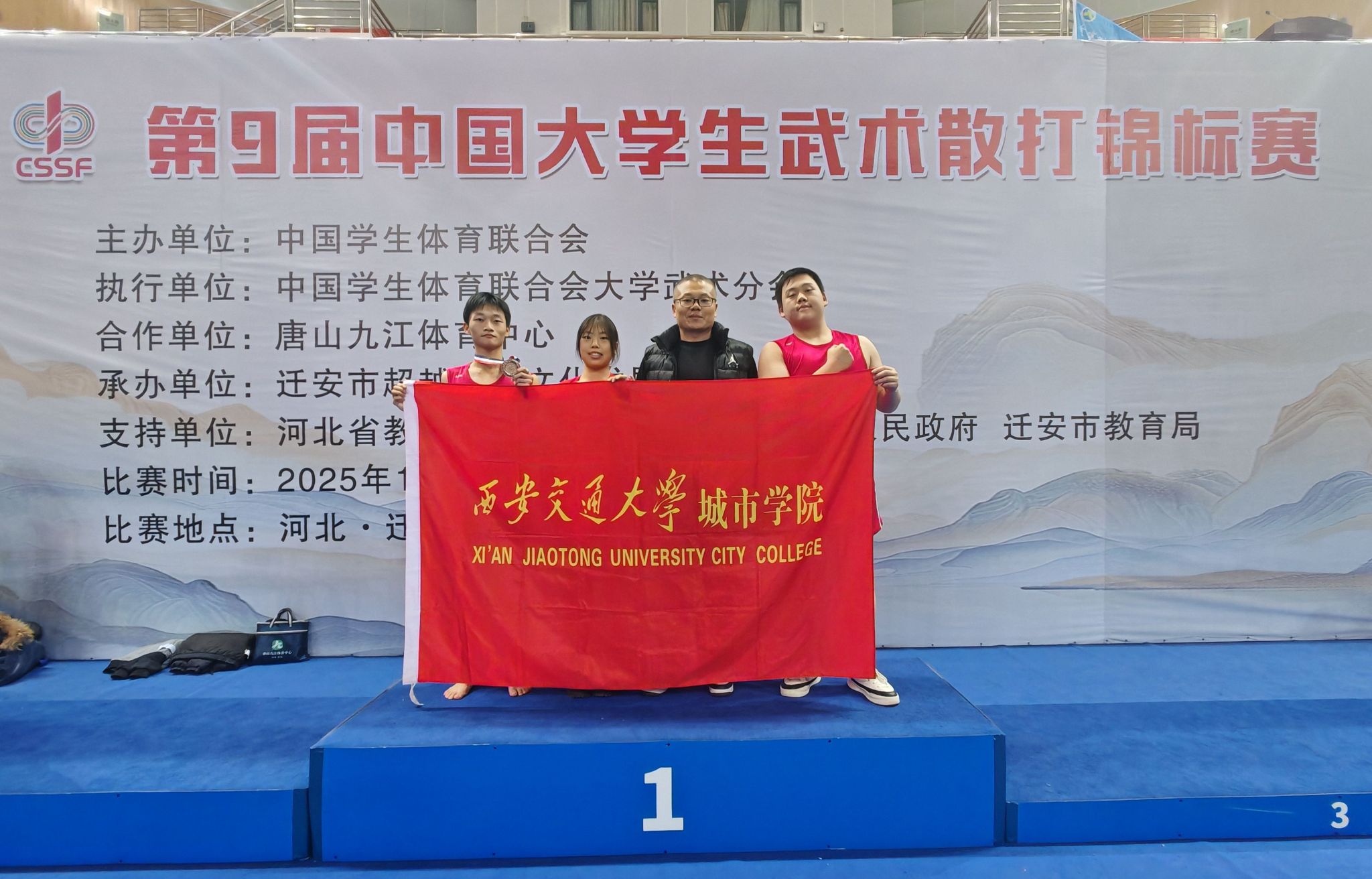 近日,西安交通大学城市学院散打队在2025年中国大学生武术散打锦标赛上,载誉而归。土木工程2501班丁伊靖同学荣获甲A组男子50公斤级全国第三名,播主2301班吕皞堃同学夺得男子甲A组100公斤级全国第五名,会计2405班刘嘉敏同学获得甲A组女子60公斤级全国第五名,为学校赢得了荣誉。此外,丁伊靖、吕皞堃两位同学获“体育道德风尚奖运动员”称号,赵冬被评为“优秀教练员”。