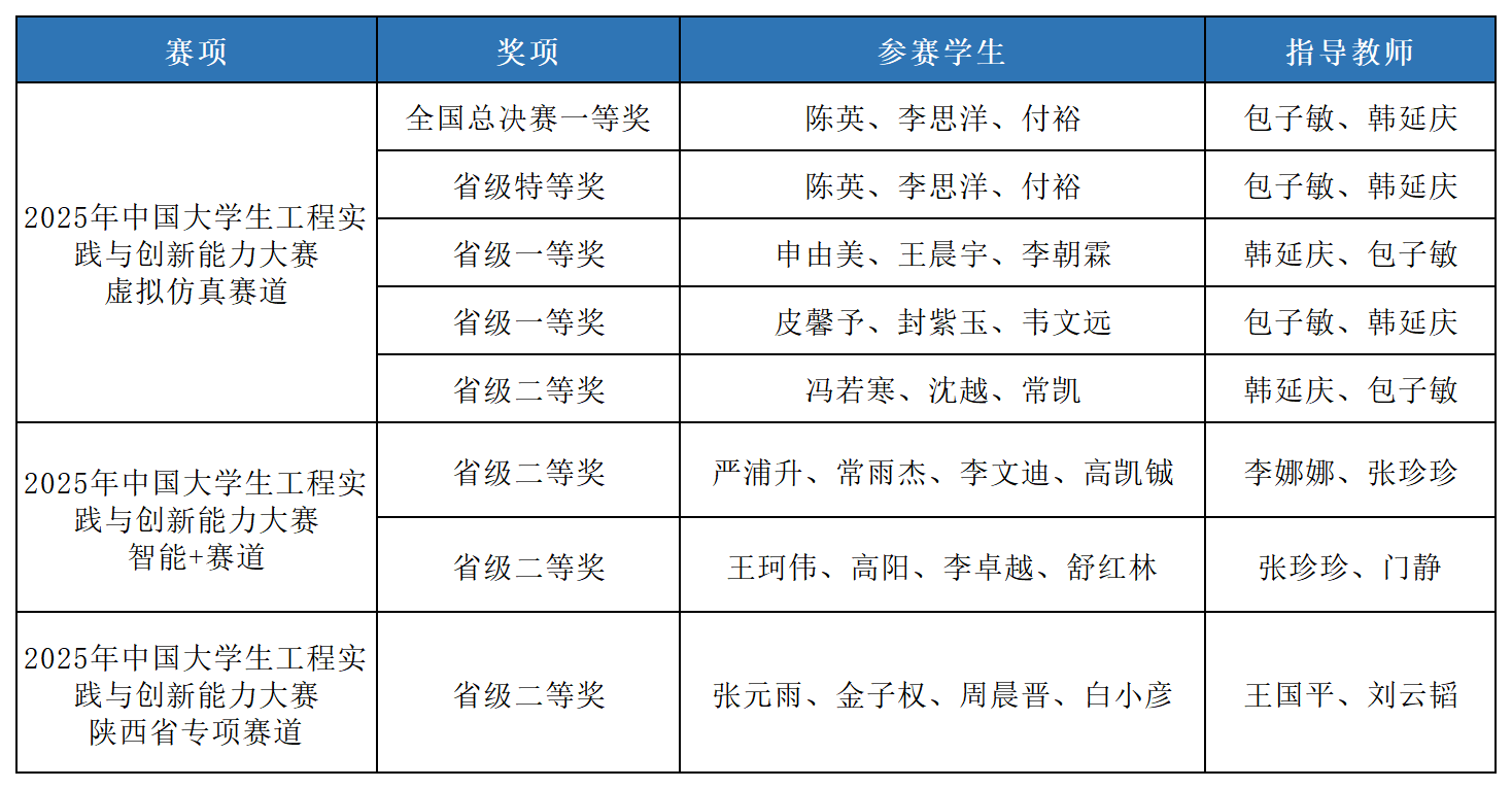 中国大学生工程实践与创新能力大赛是我国高等工程教育界规模大、影响力广的工科A类赛事之一,由教育部工程训练教学指导委员会举办,每两年举办一届。2025年中国大学生工程实践与创新能力大赛共有来自全国771所高校的12.6万名大学生参加比赛。大赛设“新能源车”“智能+”和“虚拟仿真”三个赛道的九个赛项,经过校赛、省赛、全国决赛几个环节,全方位考察参赛学生的创新思维与工程实践技能。省赛中,我校获得省级特等奖1项、一等奖2项、二等奖4项。